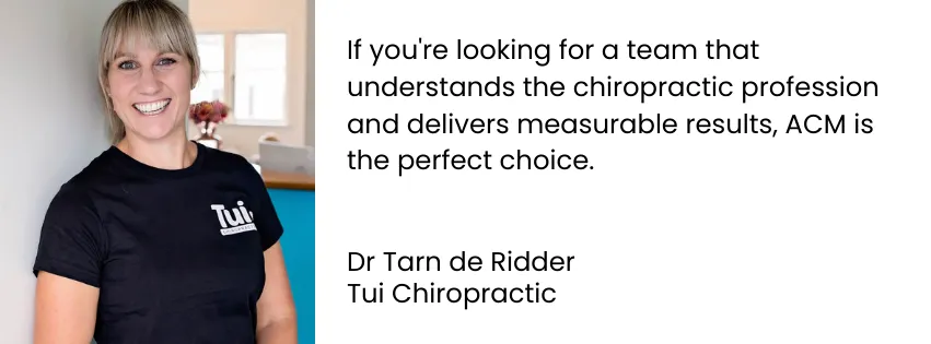 ACM truly understands chiropractic. Aidan and Josh combine deep industry knowledge with a data-driven approach that ensures marketing remains cost effective. Under their guidance our practice has seen massive growth, and their organisation and support have been exceptional.