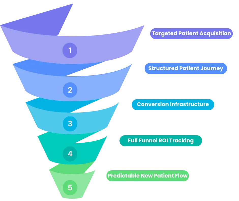 We don’t just generate leads. The system tracks the entire journey – from first click to consultation to conversion to care – helping ensure more of the right patients walk through your door.